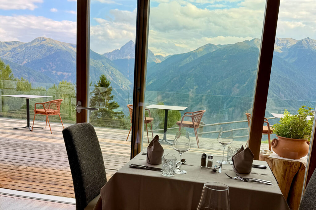 Als ich nach einer stressigen Woche im Hotel Herol ankam, mein nach Zirbenholz duftendes Zimmer bezogen und mich mit einem Tee auf der Terrasse niedergelassen hatte, durchströmte mich gleich eine wohltuende Ruhe, ein Gefühl, als wäre ein Schnellzug im Bahnhof angekommen. Meine Atmung vertiefte sich und ich wurde gleich eins mit der klaren Luft, den Geräuschen von fernen Milanen und Kuhglocken, mit dem Rauschen der Tannen und dem überwältigenden Ausblick.